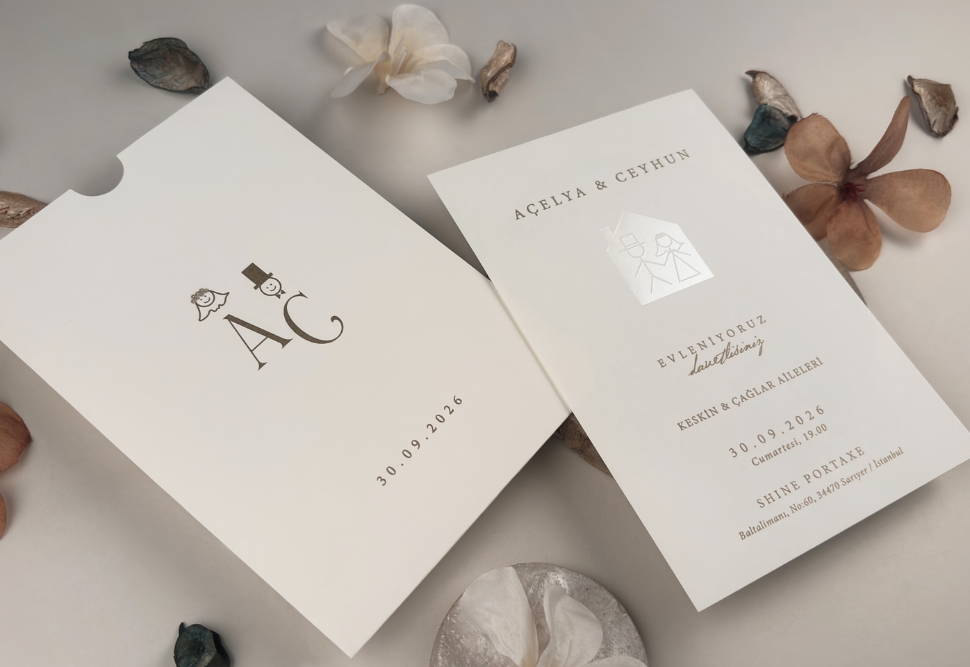 Kırık Beyaz Renkli Zarflı ve İç Kart Kaliteli Kabartma Lake Baskılı Davetiye 13327