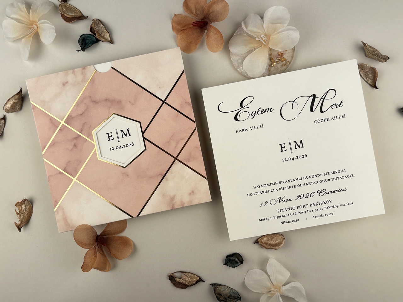 Renkli Desen Baskılı Pencereli Zarflı Kare Şeklinde Davetiye